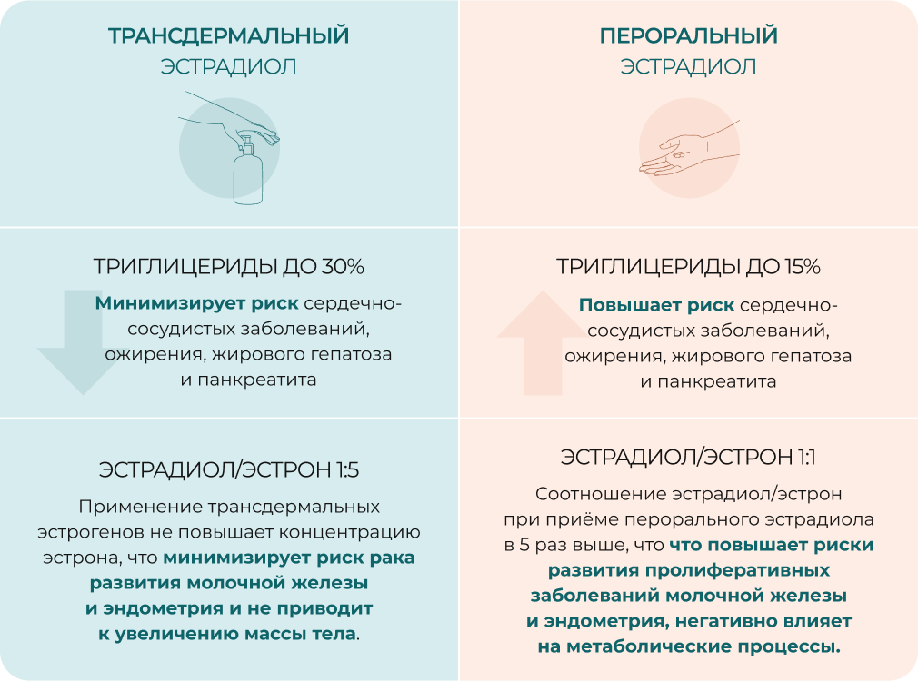 Ключевым фактором, влияющим на профиль безопасности терапии, является не только сам факт применения гормонов, но и их тип, дозировка, путь введения и комбинация эстрогенов с гестагенами.